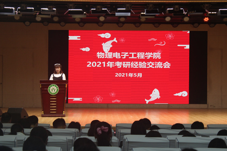三名优秀学生代表结合自身考研经历依次向在场师生分享考研经验及心得体会。2017级物理学班谢润涵从院校选择、初试备考、复试备考三个方面讲述自身考研经历,并建议学子们应根据自身优势,认真分析,谨慎挑选考研学校及专业。2017级电子科学与技术班刘续以自身考研经历为基础,强调竞赛考试对考研的重要性,学科学习应根据自身情况寻找合适的学习方法,注重知识理解,重视真题练习,不断巩固。2017级应用物理学班张婉婉从考研心态、初试、复试准备等方面阐述自身经验及体会,建议学子们要坚持自己的复习计划,多肯定自我,鼓励自己,坚持不懈。