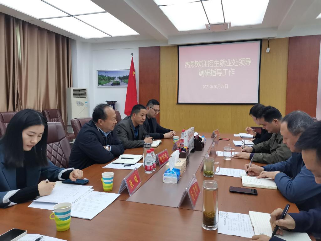 10月27日下午,招生就业处处长赵明民、副处长王松亭、张楠等一行到我院调研指导招生与就业、创业工作,学院党委书记刘百超、院长涂友超、党委副书记张丽、副院长汤清彬及相关工作人员参加会议。