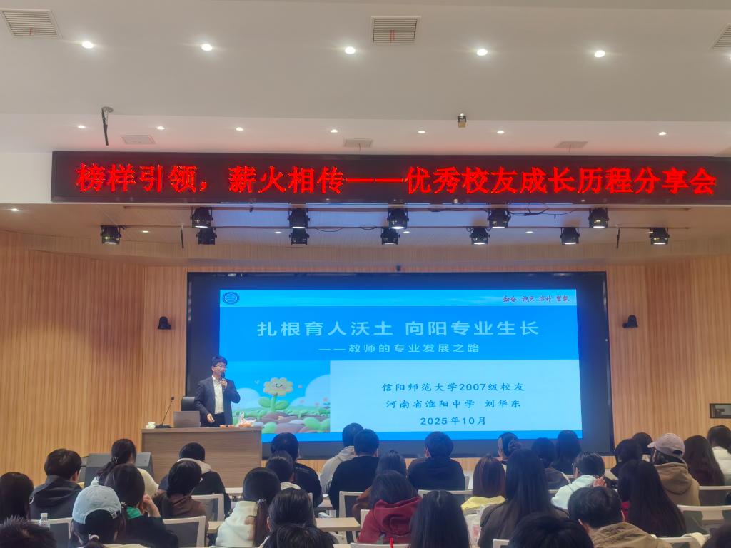 10月28日,我院特邀2007级物理学专业校友、全国最美教师刘华东,为物理学专业学生作“扎根育人沃土,向阳专业生长—教师的专业发展之路”专题报告,学院党委书记方明科主持。