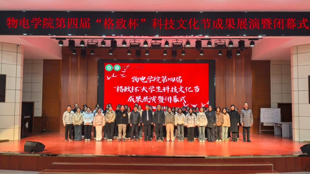 12月9日,我院第四届“格致杯”大学生科技文化节成果展演暨闭幕式在逸夫楼报告厅隆重举行。学院党委书记方明科,院长龚克,党委副书记张丽,副院长刘墨林、陆阳、宋宣玉出席活动,专业教师、辅导员及各年级学生代表齐聚现场,共同见证这场科技与文化交融的青春盛会。