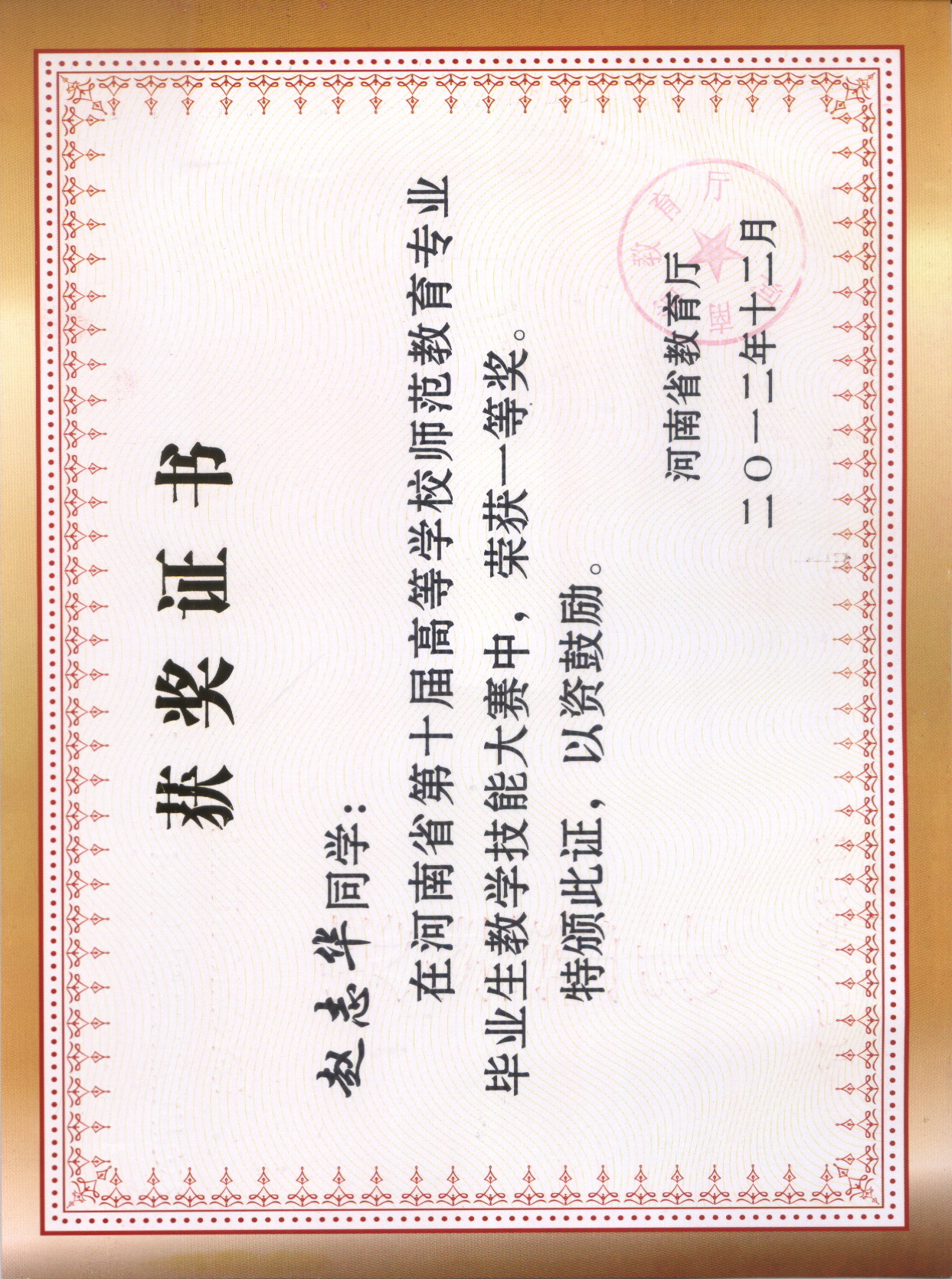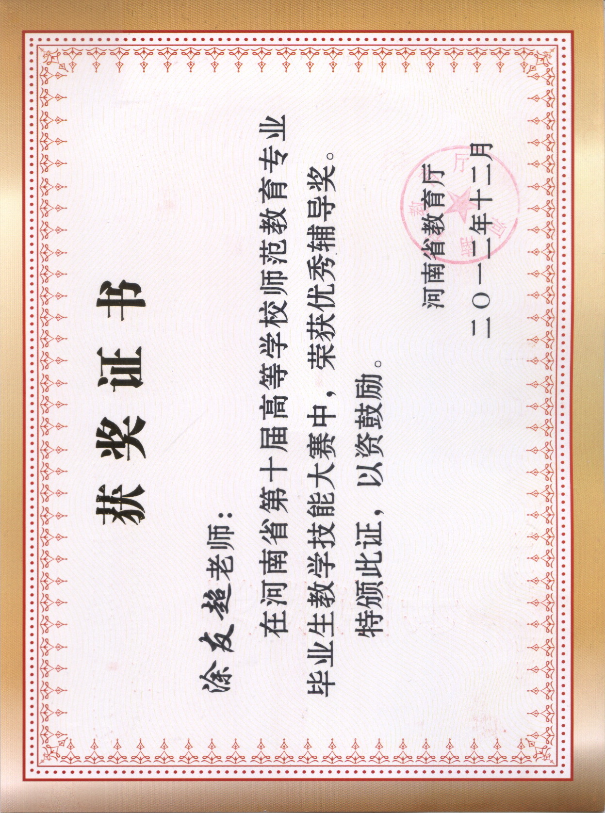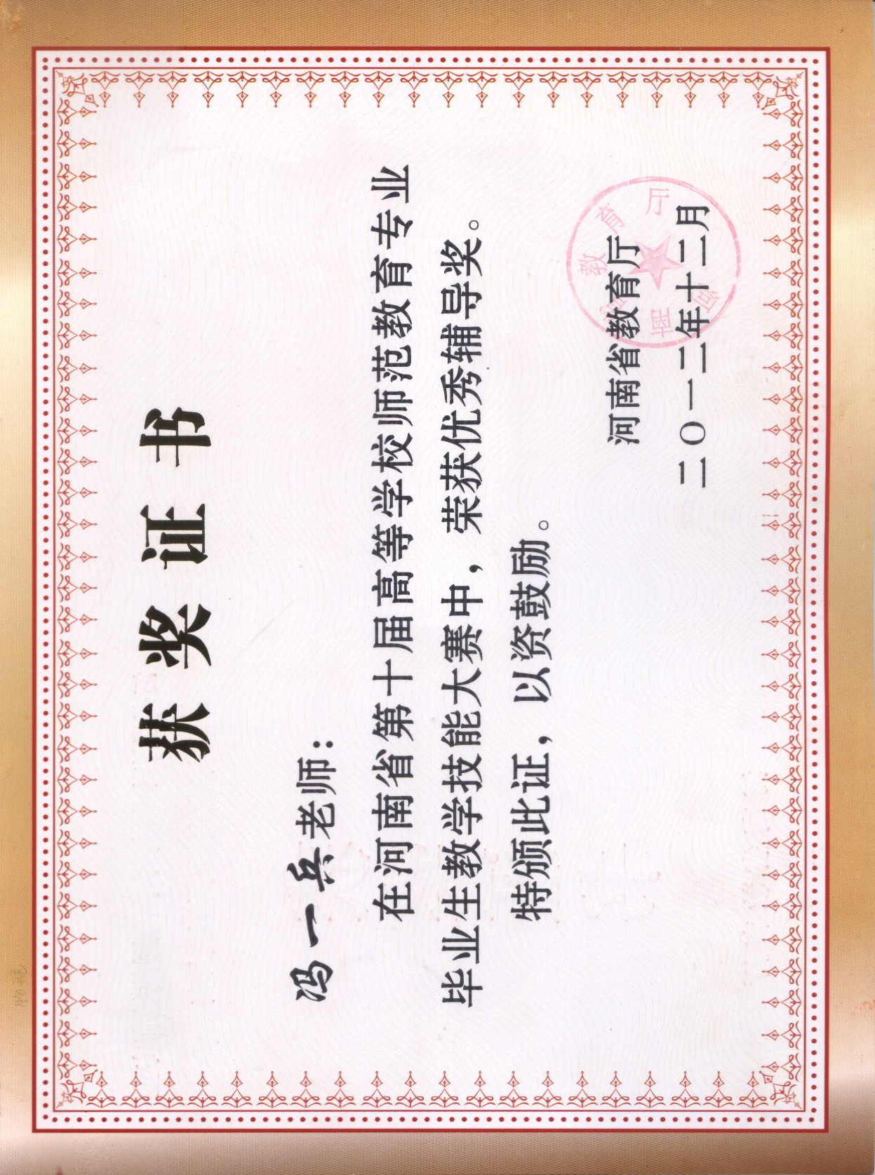 2012-河南省第十届教学技能大赛证书