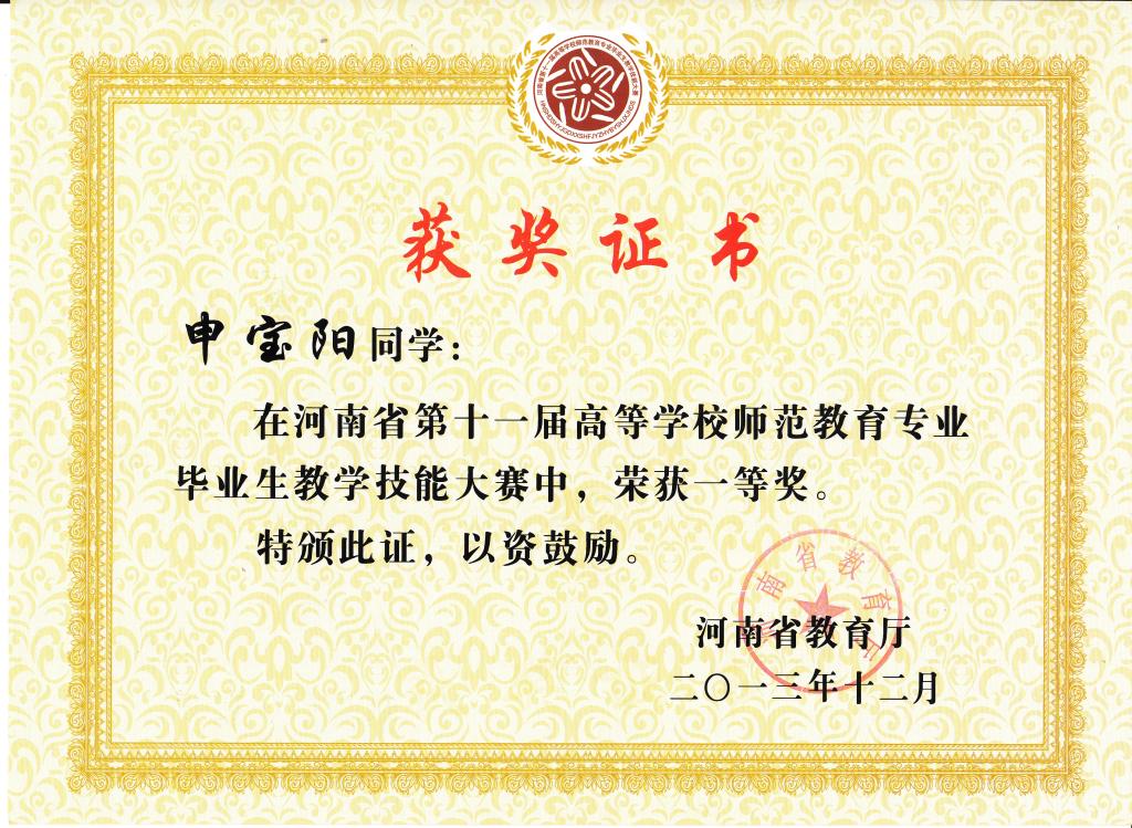 2013-河南省第十一届教学技能大赛证书
