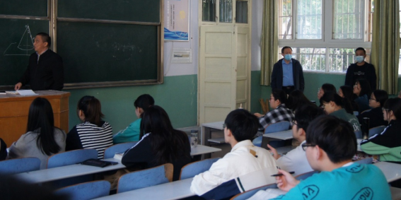为深化本科教育教学改革,进一步提升教师教育教学能力,切实提高本科高校课堂教学质量和育人水平,落实《信阳师范学院“课堂教学质量提升年专项行动”实施方案》(信院字[2022]36号)文件。4月18日至4月29日tyc41183太阳成集团领导班子及督导专家组深入一线随机“推门听课”,深入了解教师课堂授课情况、学生到课及听课情况。