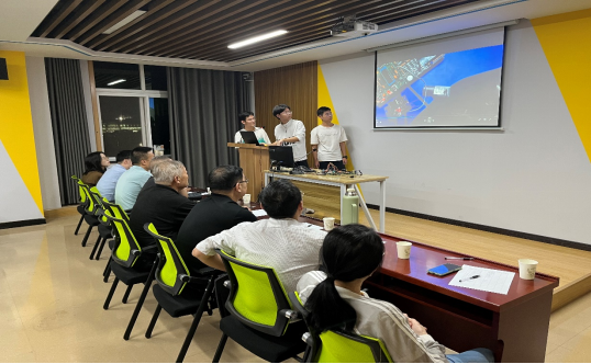 比赛现场,同学们都做好了充足的准备,分工明确,有对课题进行ppt介绍的,有对成品进行实操解说的。讲解完毕后,指导老师对每一项课题进行提问和给出优化意见,进行综合指导。