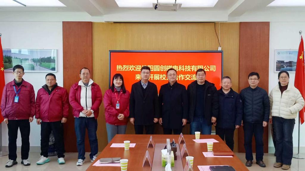 12月5日,我院与信阳圆创磁电科技有限公司在理科楼举行校企合作项目交付仪式,标志着双方合作取得重要阶段性成果。仪式上,由学院研发团队精心研制的新型高性能脉冲充磁机顺利移交至企业。信阳圆创磁电科技有限公司厂长吴磊、人力资源部经理陈婧、技术部主管代德明,学院党委书记方明科,副院长刘墨林、陆阳,以及项目研发团队教师代表马建忠、余大庆、张昆等共同出席了交接仪式。